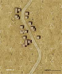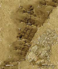 This map shows a open desert area. Difficult to attack, with only a small village to give the defender cover.
