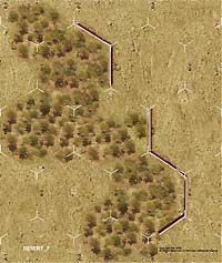 This map shows a desert town protected by olive groves and ridges. This will not be a easy place to attack.